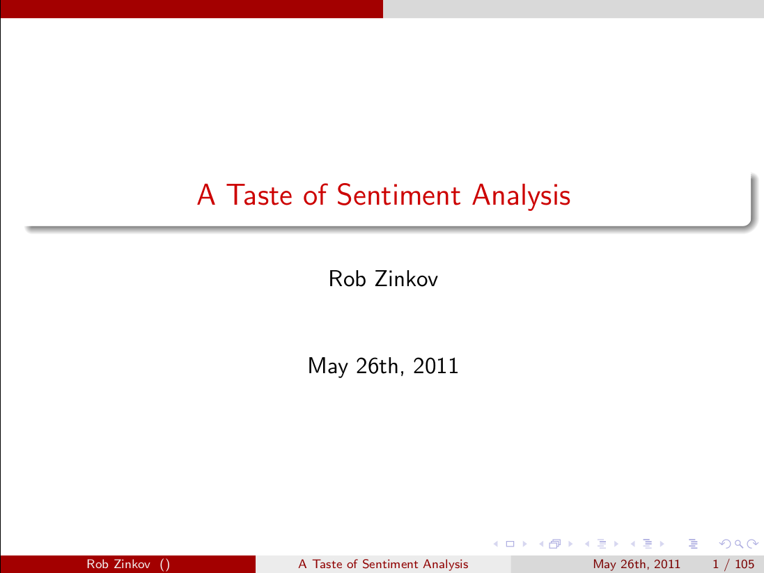 Last month, in Vienna I gave a talk about sentiment analysis. This was really fun and I hope leads to some future collaboration. I wish I had known about Dependency-tree Sentiment Classification before this talk. I guess this the trouble with talking about an active field.