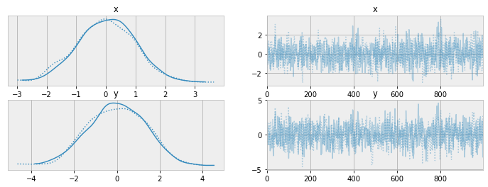 y = pm.Normal("y", x, 1., observed=y_data)m = ppc_model()